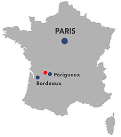 vers le sud Lascaux, Sarlat, Les Eyzies, Bergerac et à l'ouest, Périgueux...